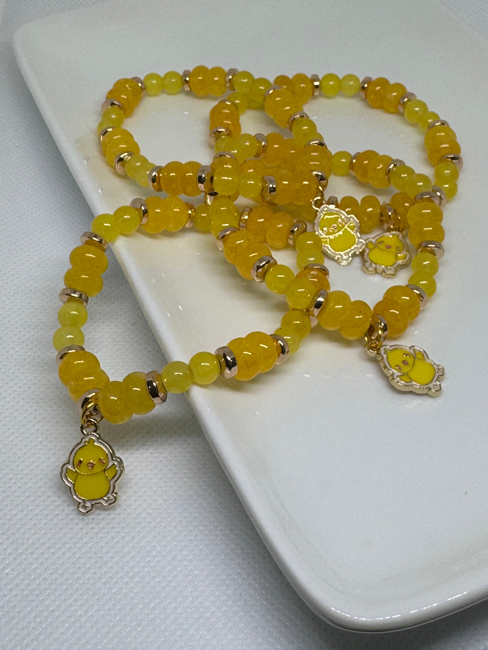 Upgrade your arm party with our glass bead bracelets! Each bracelet features stunning glass beads and a unique charm, perfect for adding a touch of elegance to any outfit. Elevate your style game with our versatile and high-quality bracelets.
